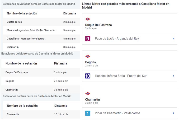 ¿Cómo llegar en Autobús, Metro o Tren a Castellana Motor?